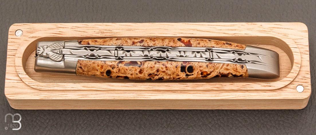 Couteau pliant Laguiole en Aubrac avec plaquettes en pierre de lame stabilisée avec de la résine