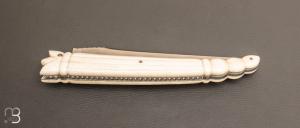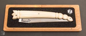 Manche sculpté (façon queue de scorpion) en os de girafe stabilisé avec ressort gravé.