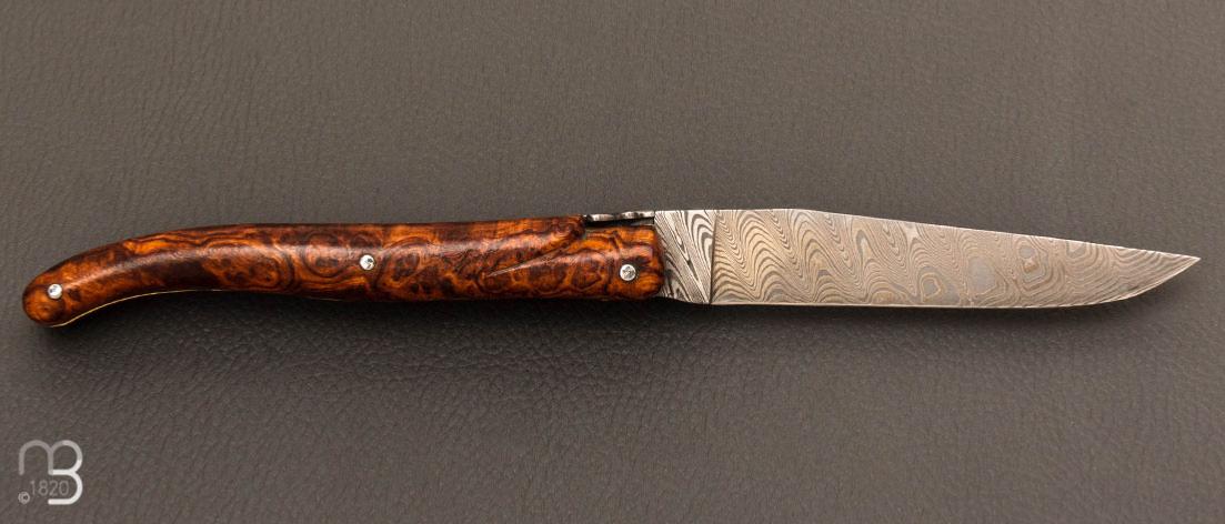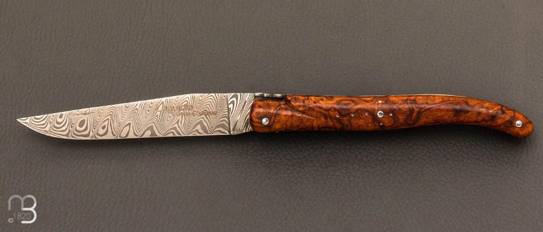 Couteau " Laguiole " par Goyon Chazeau - Loupe de bois de fer et lame damas