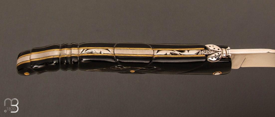 Couteau " Laguiole sculpté " par Jean Paul Daire - Corne de buffle noire et lame en 12C27