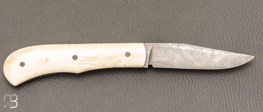 Couteau de poche lame damas forgée style "Slipjoint" de Sylvain Petit - Les Couteaux du Mitou
