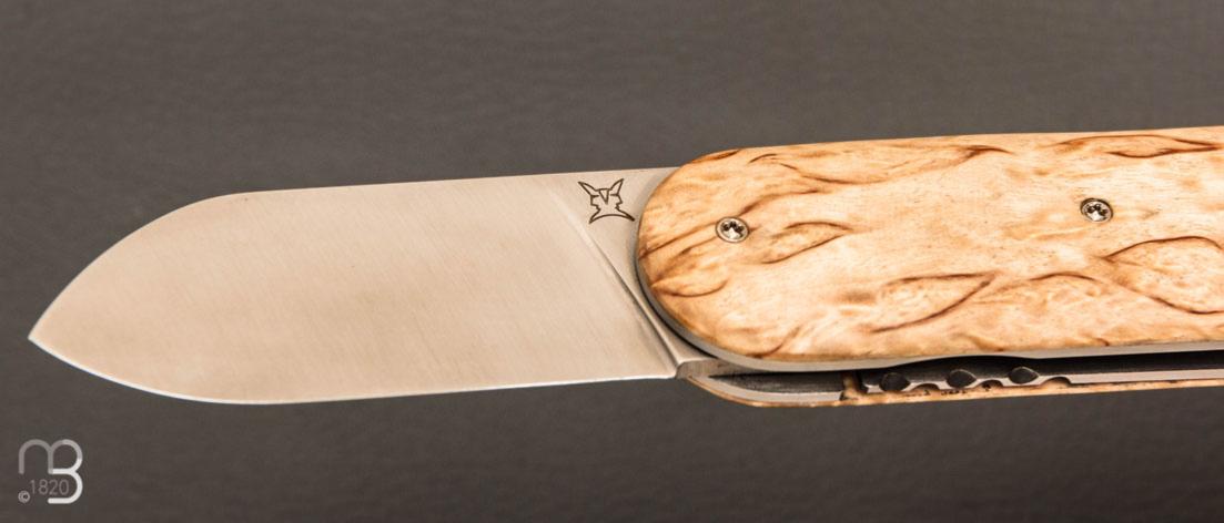 Couteau " Le Cerbère® " pliant par l'Atelier Les 2 Diables - Bouleau madré et 14c28N