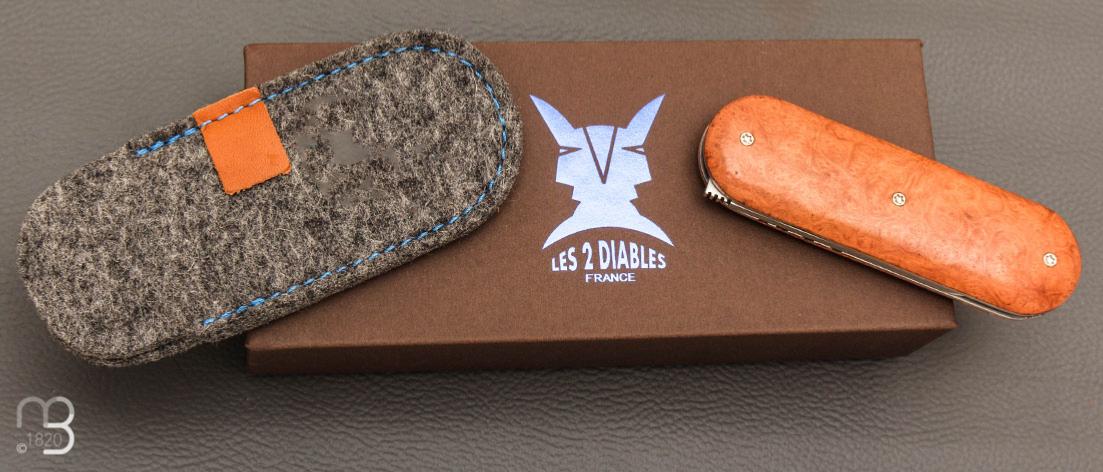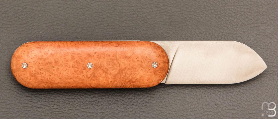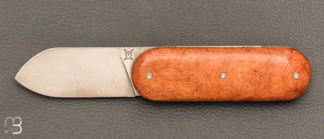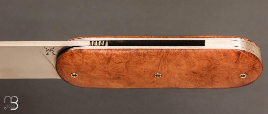 • Couteau " Le Cerbère® " pliant par l'Atelier Les 2 Diables - Loupe d'amboine et 14c28N