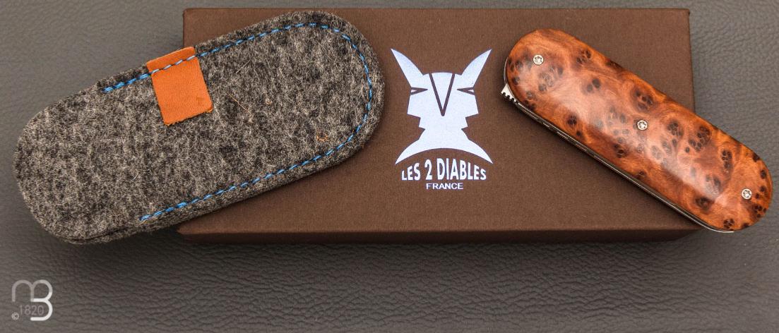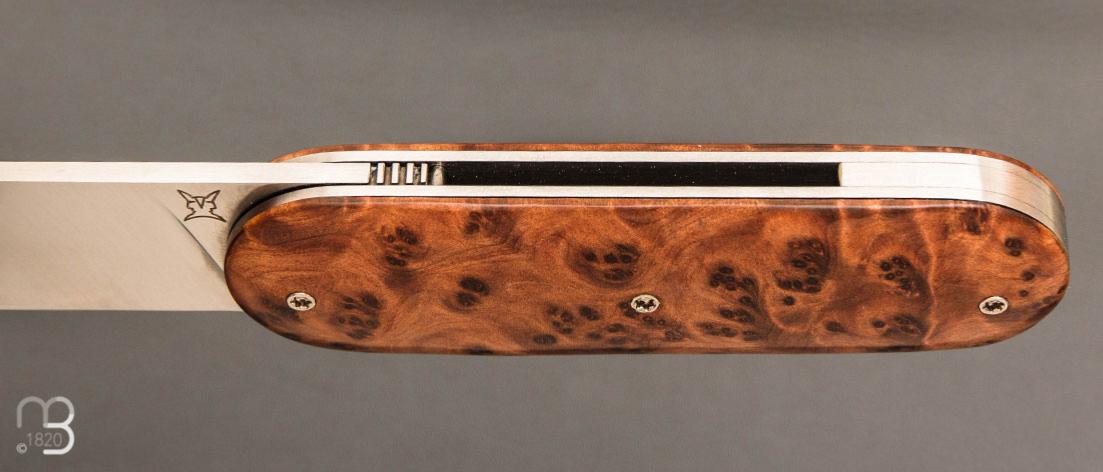 • Couteau " Le Cerbère® " pliant par l'Atelier Les 2 Diables - Loupe de Thuya et 14c28N