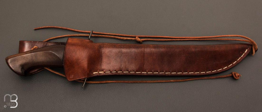 Couteau livré avec un étui cuir réalisé sur mesure par l'artisan