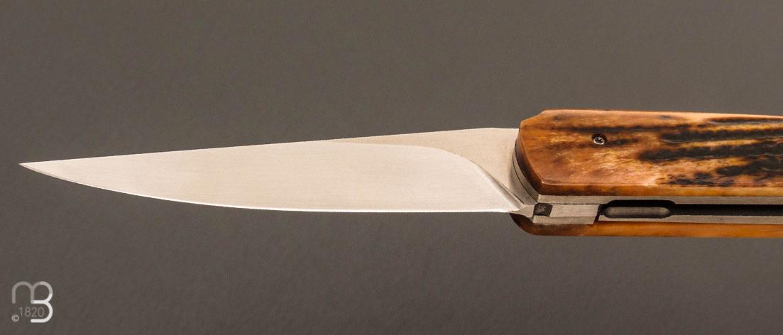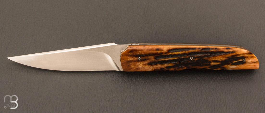• Couteau " light " pliant liner-lock par Thierry Chevron - Amber stag et RWL-34