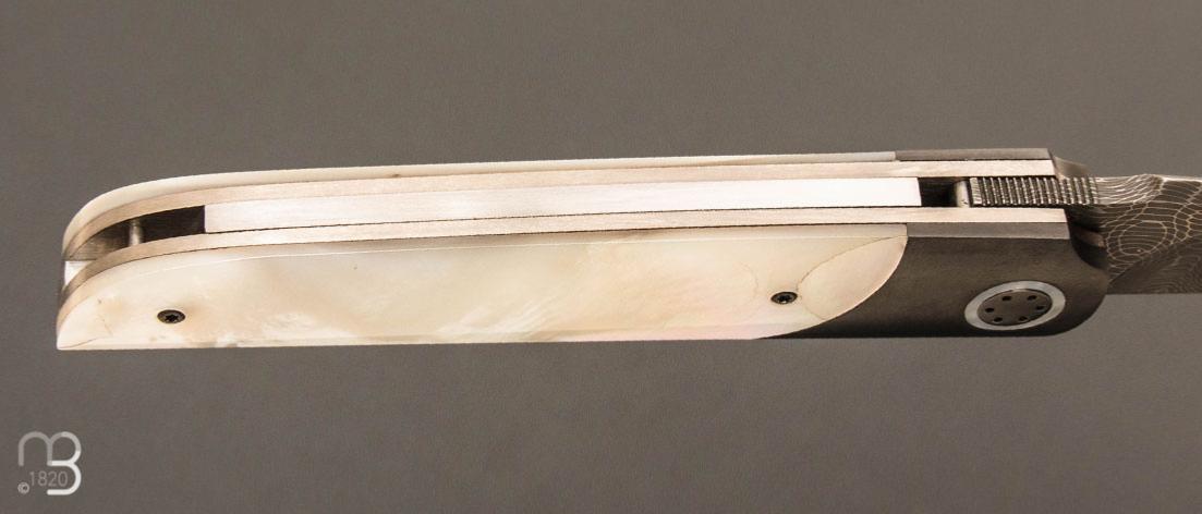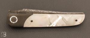 Couteau " light " pliant liner-lock par Thierry Chevron - Nacre / Zirconium et Damas de Devin Thomas