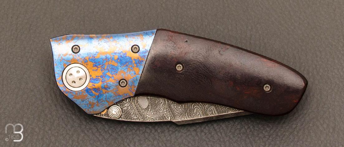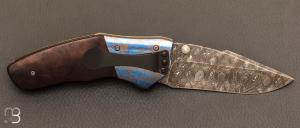 • Couteau "  linerlock " custom par Allen Elishewitz - Bois de fer et damas
