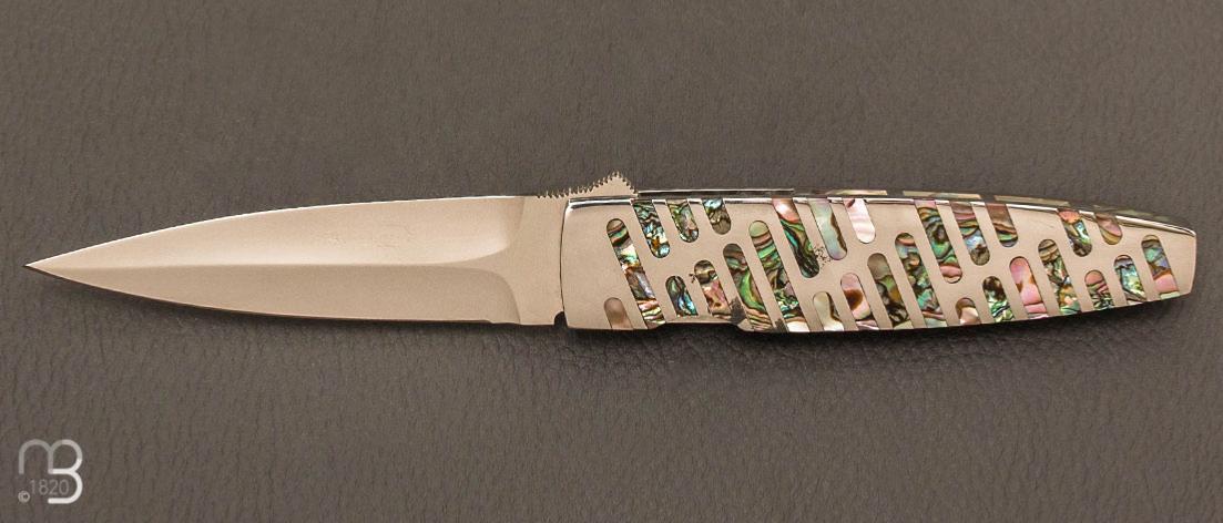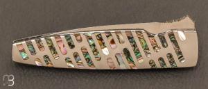 Manche en acier inoxydable 416 avec inserts en abalone (coquille d'ormeau naturelle).