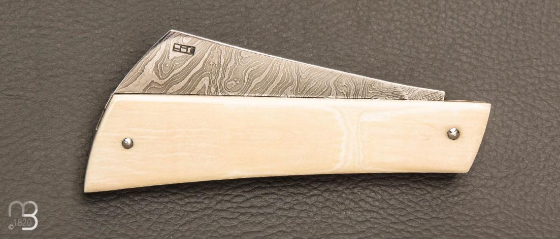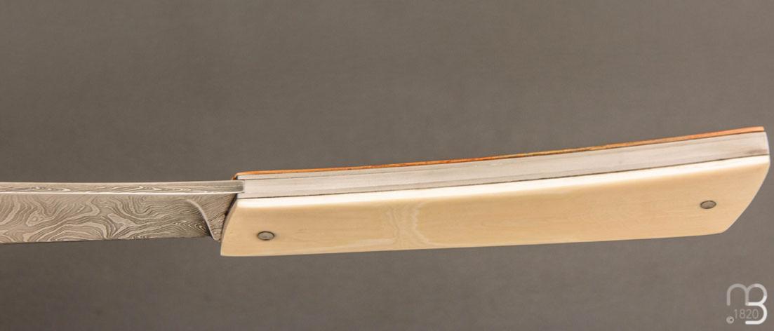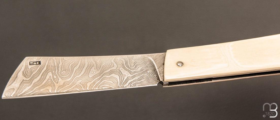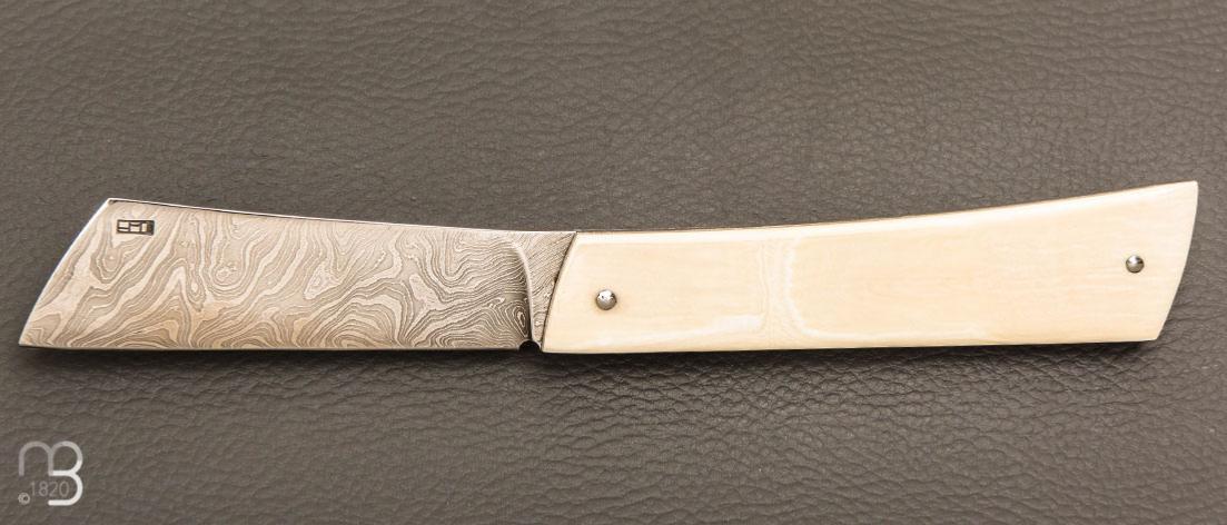 Couteau " London " custom par Samuel Guichard - Ivoire de mammouth et damas de Mickael Moing
