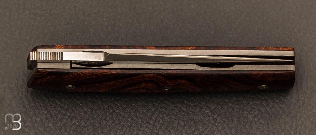 Couteau  "  Mastard " custom par Christophe Arbogast - Loupe de bois de fer d'Arizona et lame en RWL34