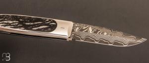 Couteau " Méditerranée " par Charles Bennica - lame damas et inlay picasso marble