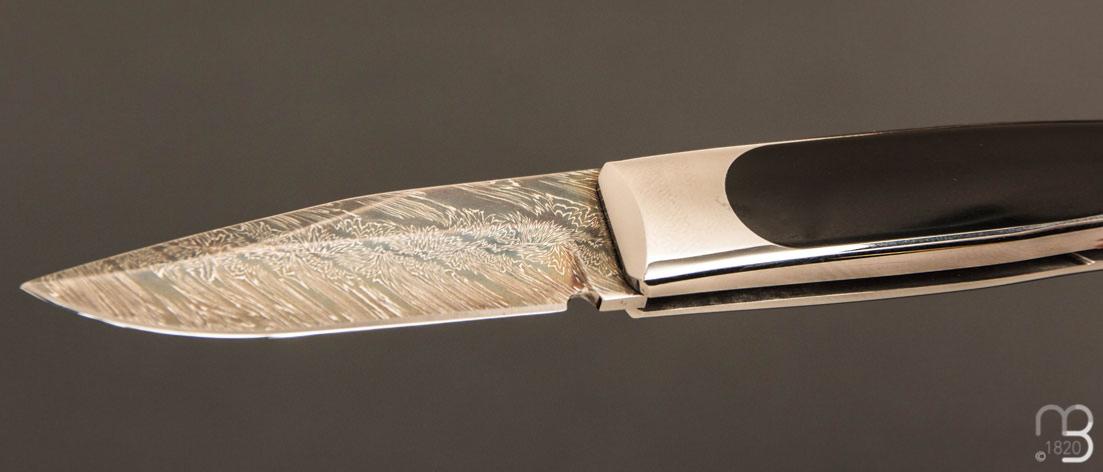Couteau " Small Méditerranée " par Charles Bennica - Lame damas d'Henry Viallon