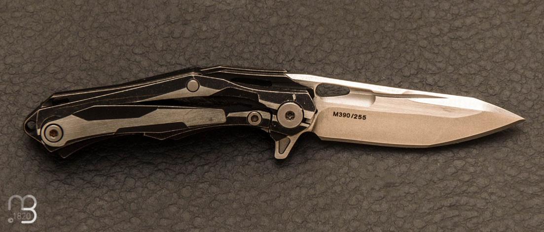 Lame en acier inoxydable M390 finition stonewashed, montée sur roulements à billes Cc Bearing.