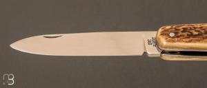 Couteau " Navette " custom de poche par Eric Albert - Bois de cerf et acier D2
