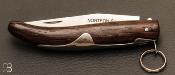 Ce couteau se compose d’un ressort en acier inox Z20C13, d’un manche en wengué et a une finition satinée.