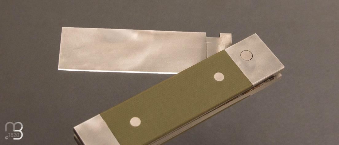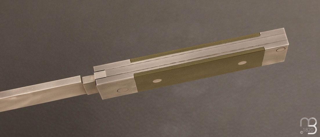 Manche en G10 kaki et acier inox oxydé / vieilli