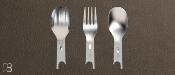 La fourchette et la cuillère sont emboîtable l'un dans l'autre, et inséparable une fois dans le manche car bloqué par la virole tournante.