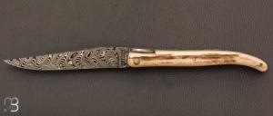 •   Couteau " P45 " de collection par Philippe Ricard - Molaire de mammouth / Damas et N690