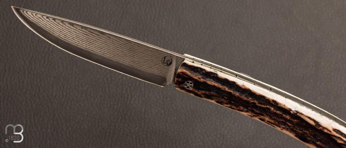 Couteau " Pastelier " par Thomas Fronteau - Bois de cerf et lame VG10 damas
