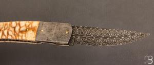 Couteau  " Pièce unique " damas et corail tigré par Christian Avakian