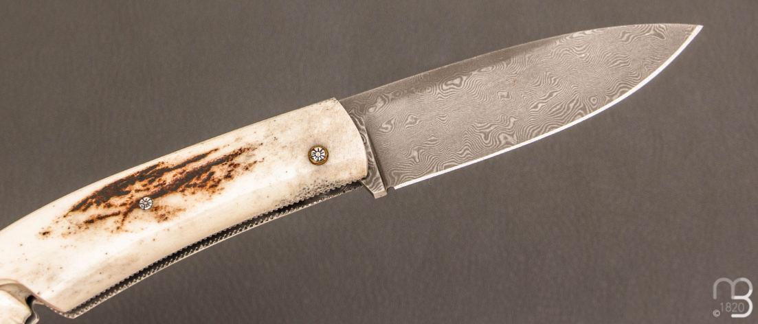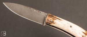 Couteau " Pièce unique " de Jérôme Lamic - Bois de cerf et damas