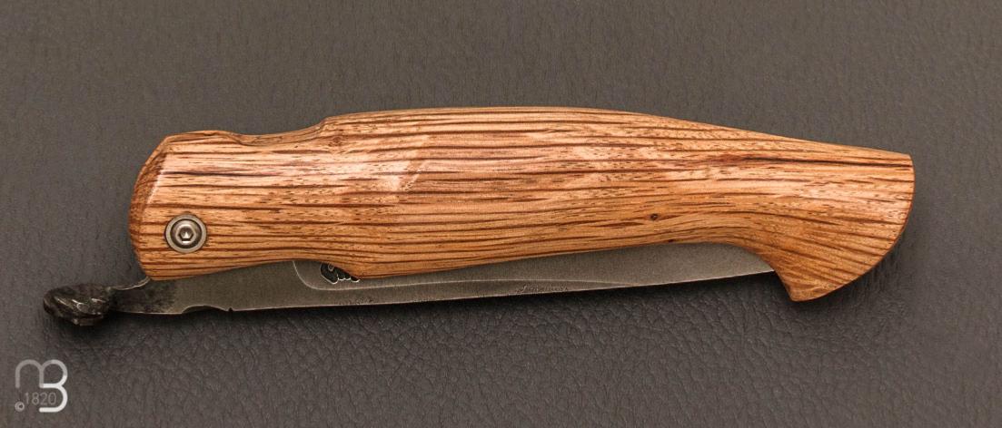 Couteau de poche style piémontais avec lentille forgée fait main par Mickaël Moing.