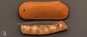 • Couteau  "  Piémontais "  par Mickael Moing - Loupe de frêne et lame forgée 100Cr6