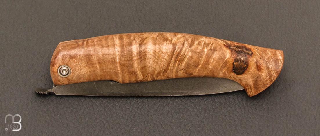 Couteau " Piémontais " par Mickael Moing - Loupe de frêne et lame forgée 100Cr6
