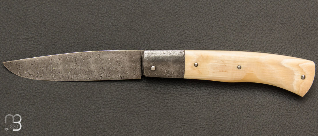Couteau pliant modèle "Talar XXL" croûte de mammouth et lame damas de Anthony Brochier