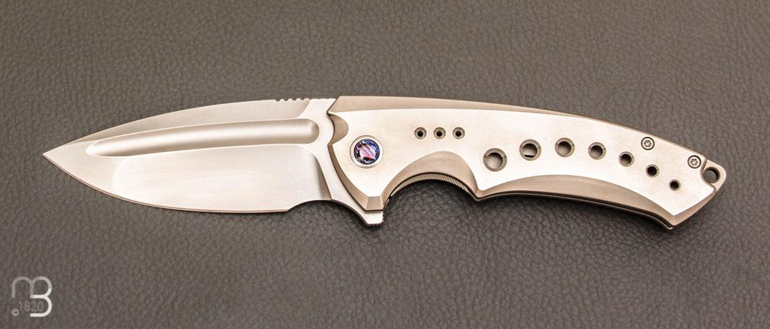 Couteau réalisé en série limitée à 155 exemplaires, nous vous proposons ici le numéro 034, livré avec boite, pochette nylon zippé et certificat d’authenticité.