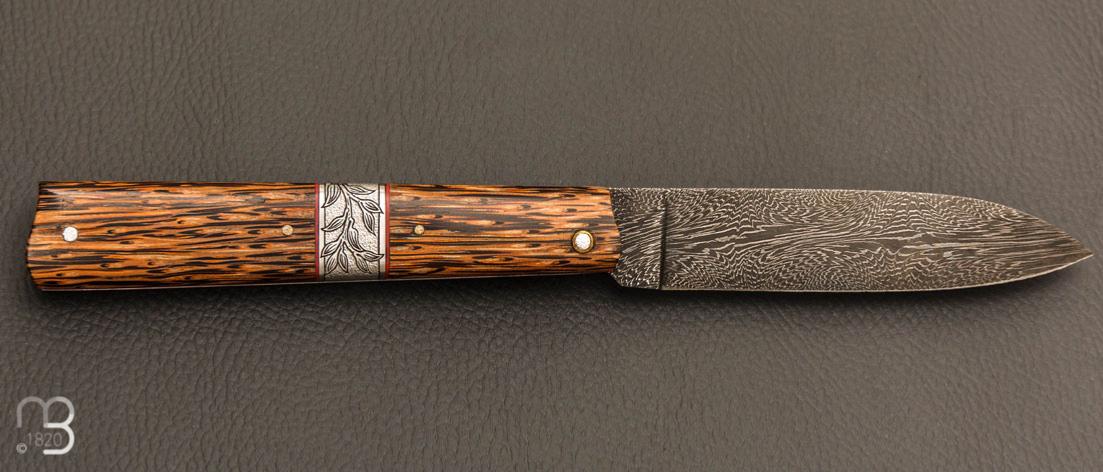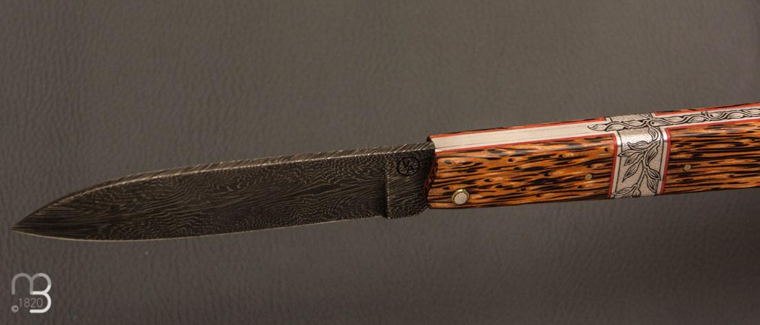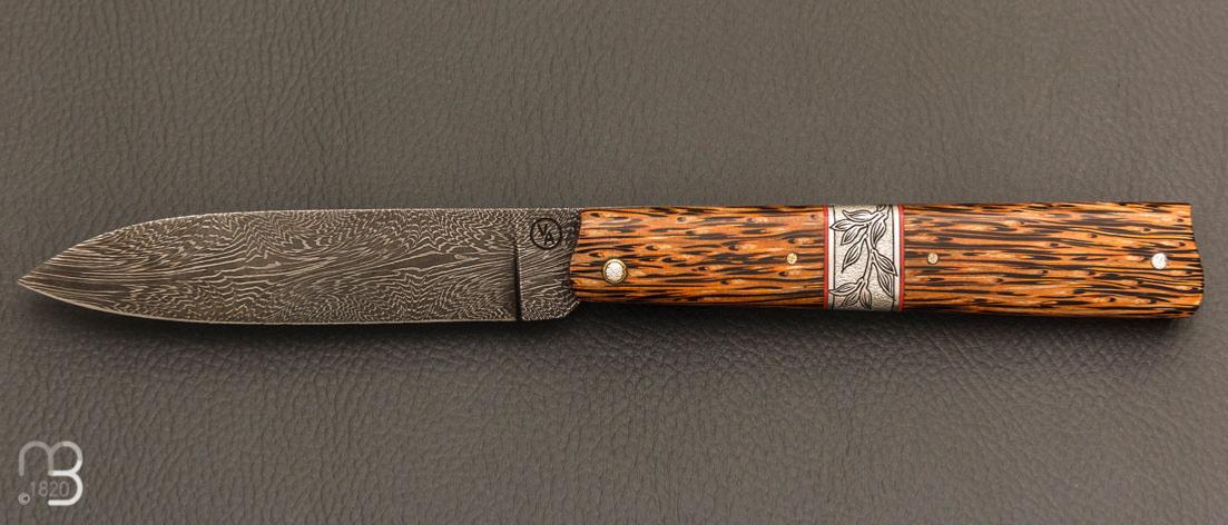 •    Couteau " Plume " par Vent d'Aubrac - Jérôme Lamic- Palmier et lame damas