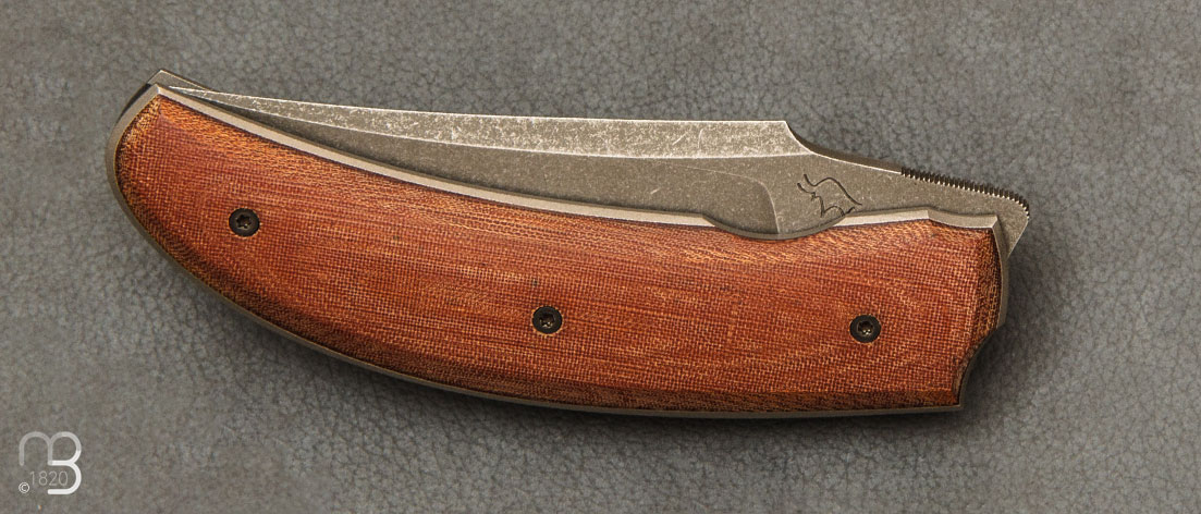 Plaquettes en micarta vintage, montée sur platines en titane.