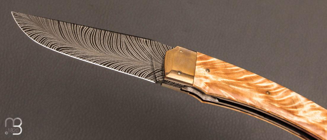 Couteau " Ptiguy " de collection par Philippe Ricard - Fourche de peuplier et lame damas plume