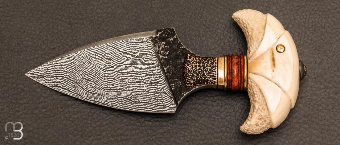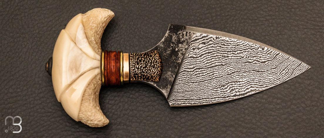 Couteau " Push Blanc " de Benoit Maguin - Damas 180 couches et ivoire de phacochère