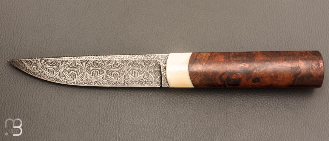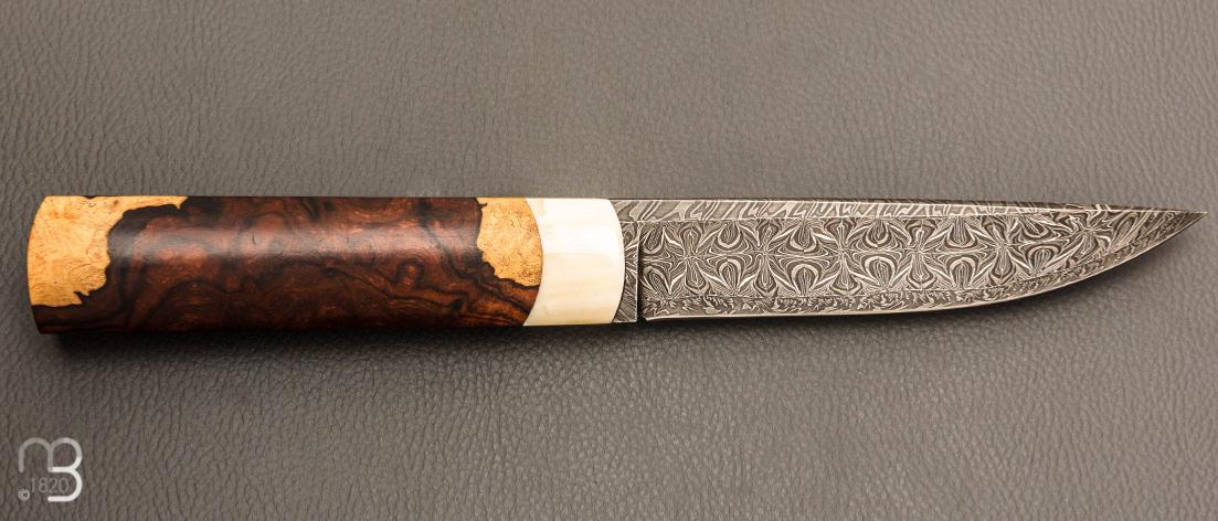 Couteau " Puukko " droit de José Viale - Bois de fer d'Arizona et damas Vlad Matveev