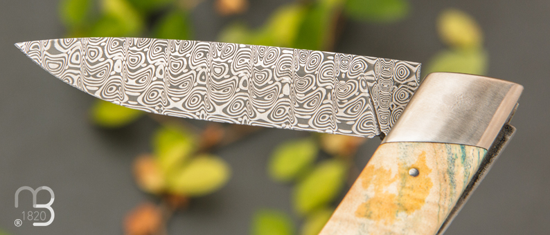 Couteau Rhôdanien hêtre stabilisé lame damas n°6