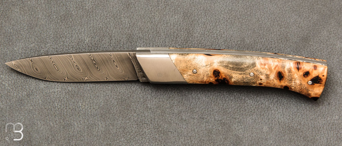 Couteau Rhôdanien loupe d'érable stabilisée lame damas