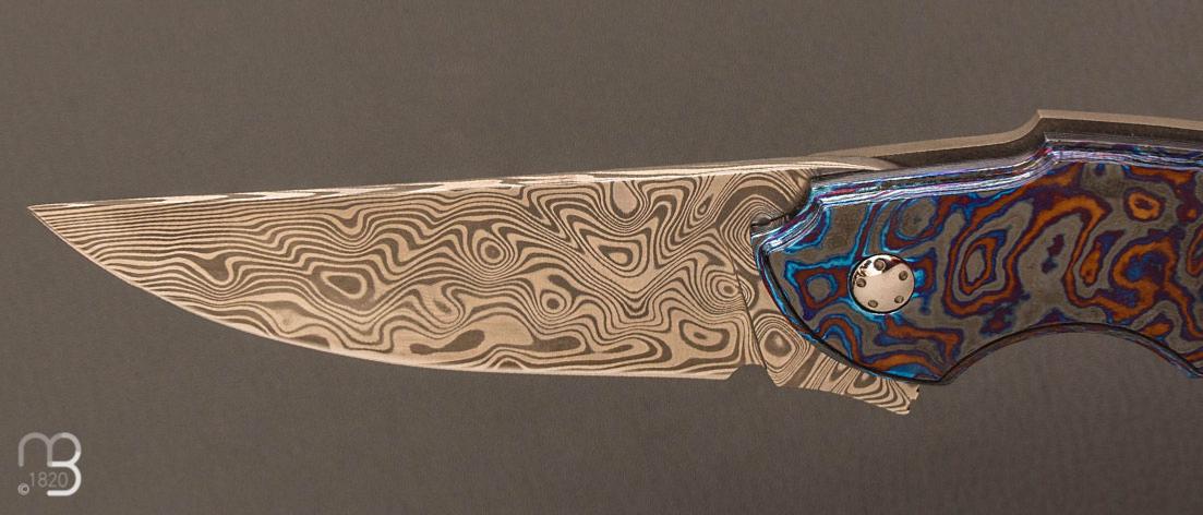 •  Couteau   " Framelock " custom de Stéphane Sagric - Timascus et lame en Damasteel®