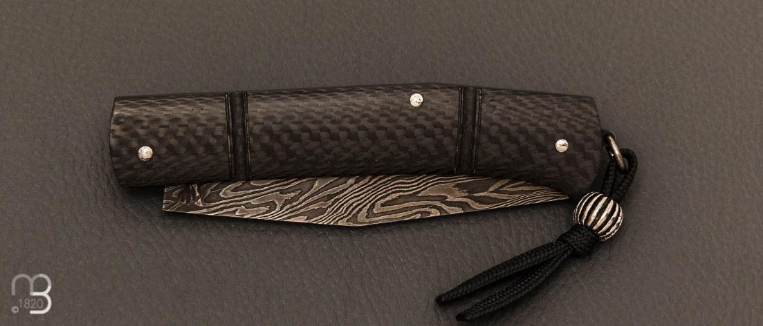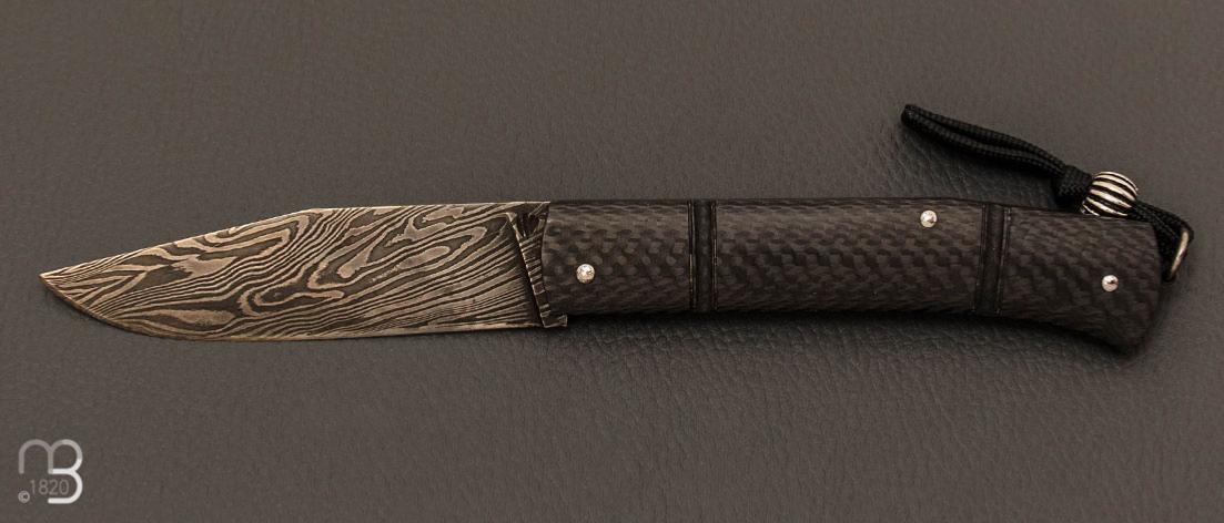 Couteau " Rumilly Black Serie " fibre de carbone et lame damas carbone par Philippe Lemonnier