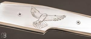 • Couteau "  Scène Faucon  " à secret par Eric Depeyre - Inox et lame damas de Vally