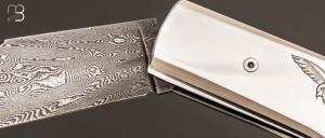 Couteau "  Scène Faucon  " à secret par Eric Depeyre - Inox et lame damas de Vally