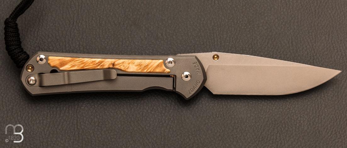 Manche et clip en titane 6AL4V, avec insert en box elder.