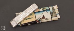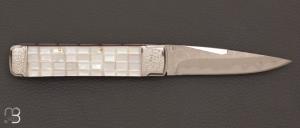 Couteau " Skin Mosaïc " custom en nacre et damas SGPS par Koji Hara