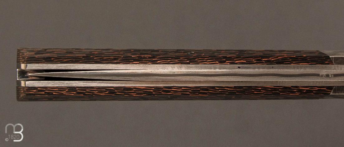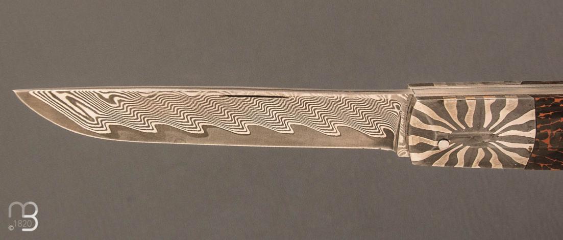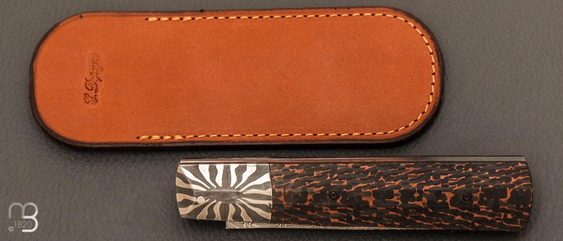 Couteau " Slipjoint " custom par Eric Depeyre - Fibre de carbone et lame damas japonais