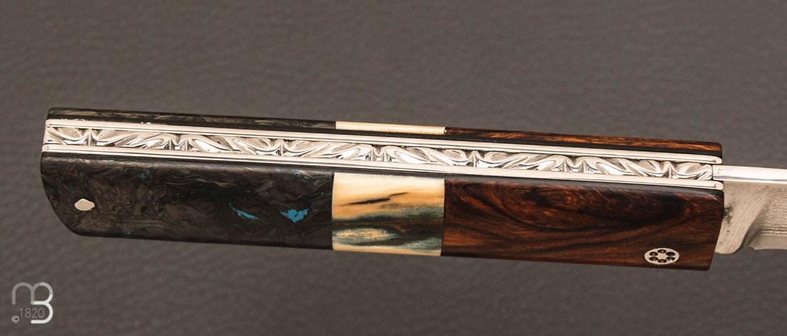 Couteau " Snard " par Tom Fleury - Fibre de carbone mammouth et lame suminagashi