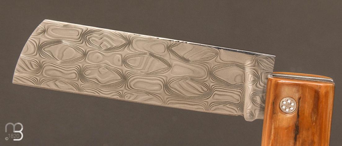 Le couteau de poche Snard, le schlass vendéen, avec un manche en ivoire de mammouth et une lame en damas