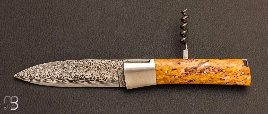 Couteau Vercors G.R. bouleau madré stabilisé et lame damas et tire-bouchon