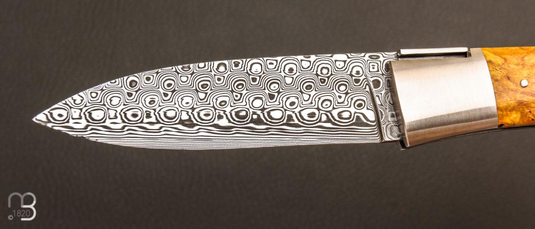 • Couteau Vercors G.R. bouleau madré stabilisé et lame damas et tire-bouchon
