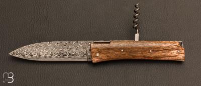 Couteau Vercors G.R. os de chameau et lame damas et tire-bouchon